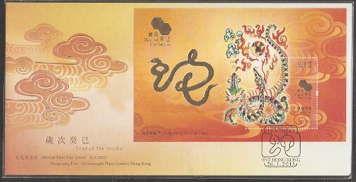 2013香港首日封,生肖蛇(小型张),每枚。