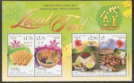 2014香港邮票,地道美食(与马来西亚联合发行),小全张。