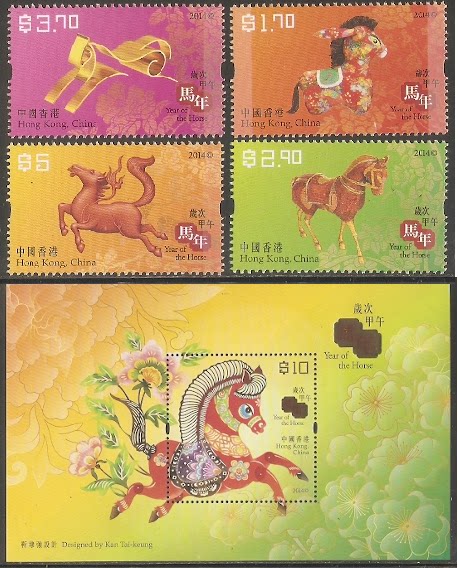 2014香港邮票,生肖马,4全+小型张。