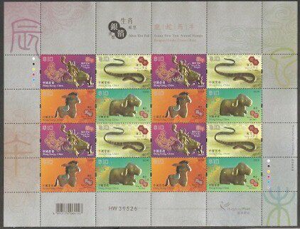 2015香港邮票,银箔烫压生肖(龙、蛇、马、羊),小版张。