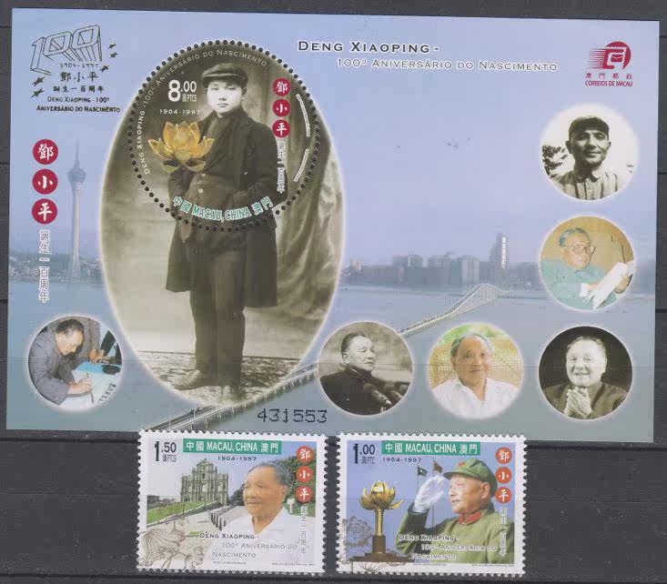 中国澳门2004年邓小平诞生一百周年(邮票2全+小型张)
