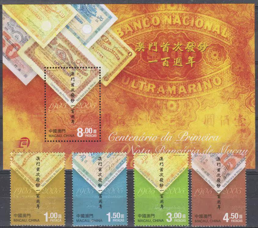 中国澳门2005年澳门首次发钞一百周年(邮票4全+小型张)