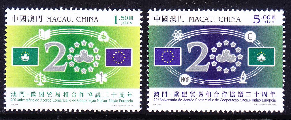澳门邮票 2013年欧盟贸易和合作协议20周年 2全新