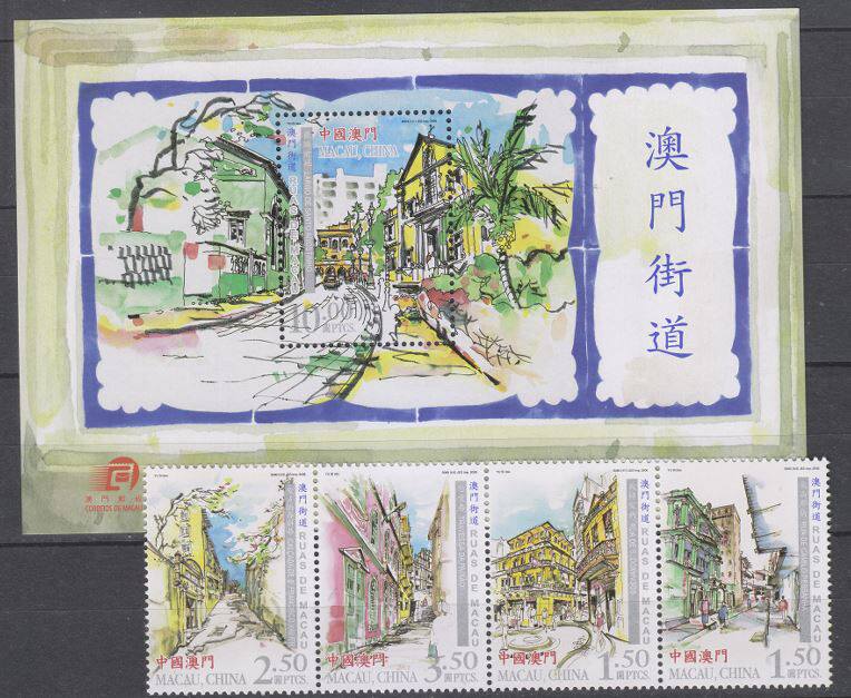 中国澳门2006年澳门街道(邮票4连+小型张)