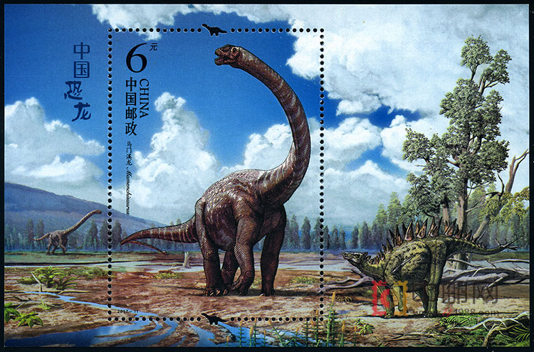 中国邮政定于2017年5月19日发行《中国恐龙》特种邮票一套6枚,小型张1枚,图案内容分别为:青岛龙、永川龙、华阳龙、中华龙鸟、巨盗龙、小盗龙,小型张图案为马门溪龙。全套邮票面值为15.30元。