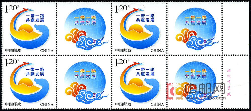 GXHP45 《一带一路 共赢发展》个性化邮票(厂铭四方连)