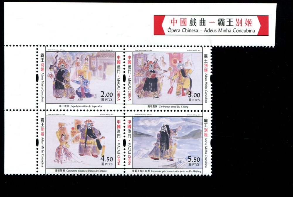 澳门2017年中国戏曲 霸王别姬邮票 4连(版头版铭)