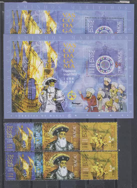 中国澳门1998年华士古达伽马-航海路线(邮票6全+小型张2全)