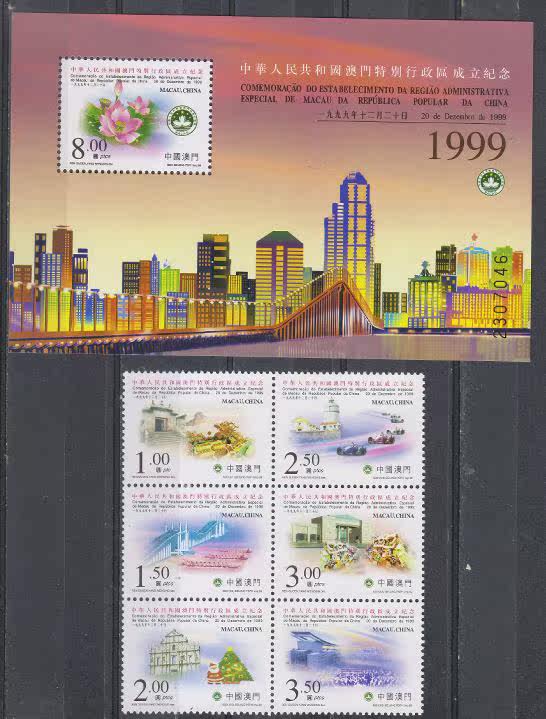 中国澳门1999年澳门特别行政区成立纪念(邮票6全+小型张)