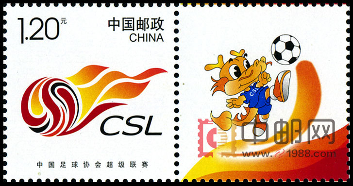 附票带有中超联赛官方吉祥物“龙人”等图案的个性化服务专用邮票