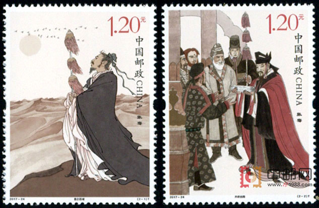 2017年9月20日,为弘扬弘扬中华民族的爱国、坚韧和开拓精神,中国邮政发行了《张骞》特种邮票,全套2枚。