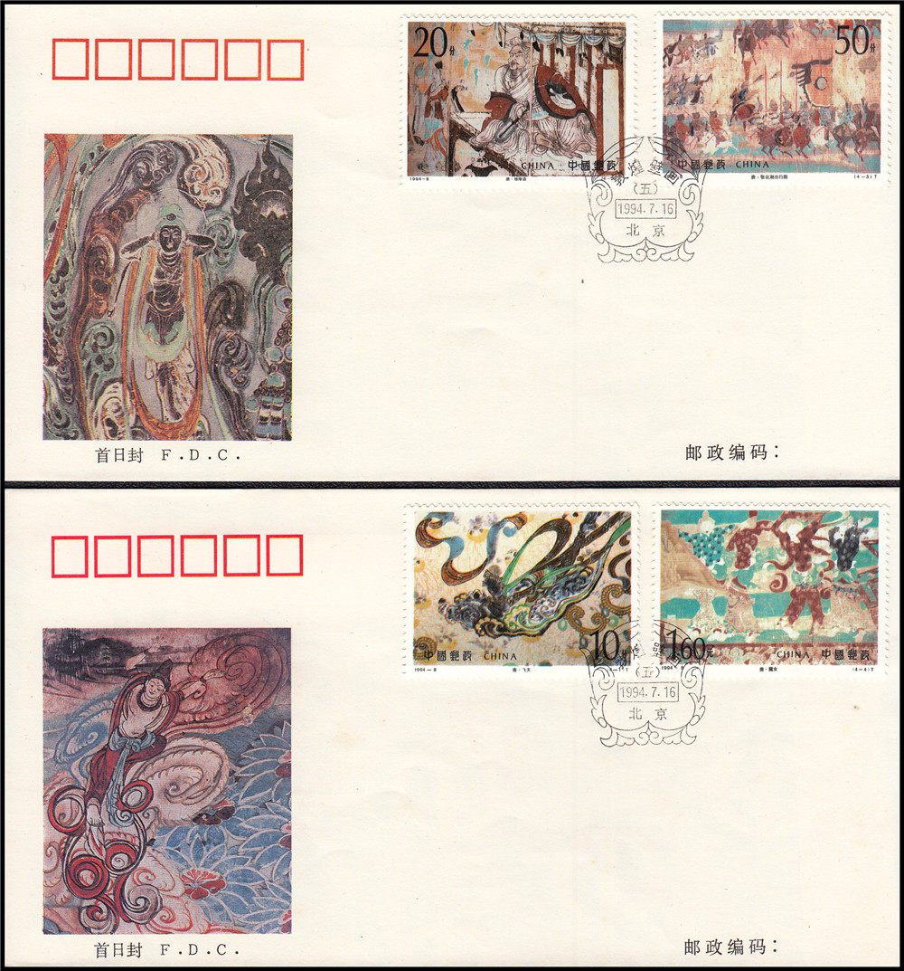 集邮总公司发行:1994-8《 敦煌壁画(第五组 )》特种邮票首日封