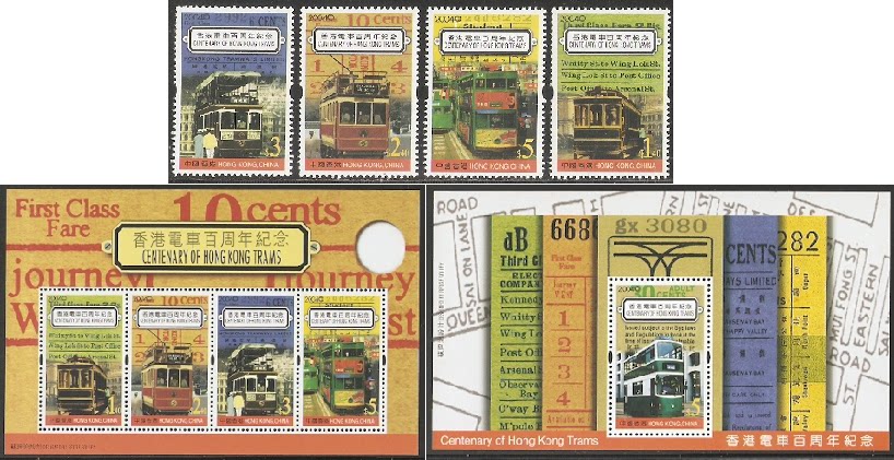 2004香港邮票,电车百年,4全+小全张+小型张。