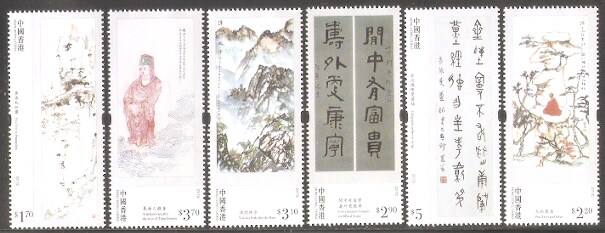 2017香港邮票,饶宗颐教授画作及书法,6全。