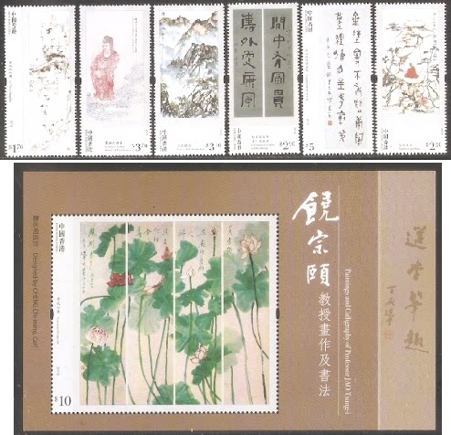 2017香港邮票,饶宗颐教授画作及书法,6全+小型张。