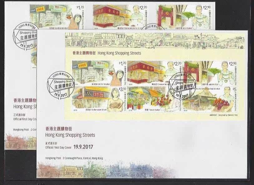香港 2017 首日封 香港主題購物街 郵票