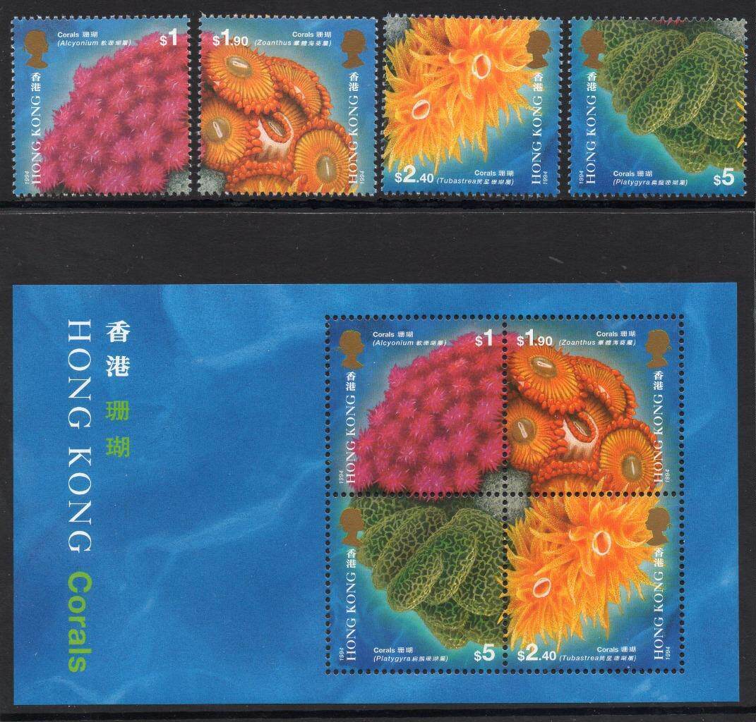 香港 1994年 香港 珊瑚 小全張 + 郵票
