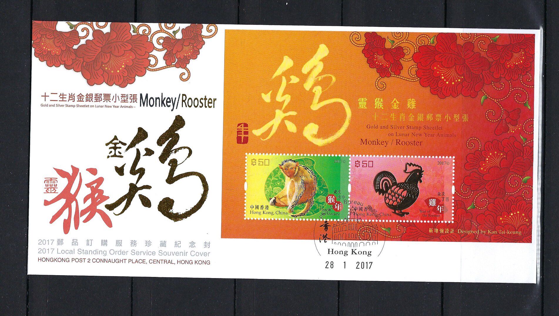 香港 2017 雞年 四輪 12生肖 金銀 郵票 首日封 年初一