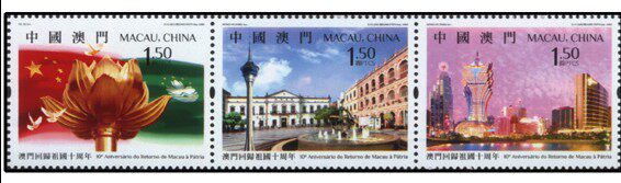 MS0115 澳门2009年特区成立十周年邮票 回归十周年 3连