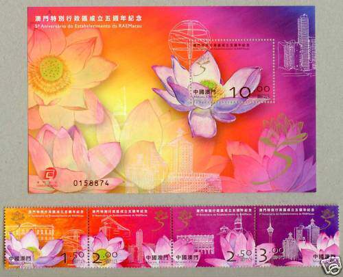澳門 2004 年 特別 行政區 成立 5周年 小全張 + 郵票