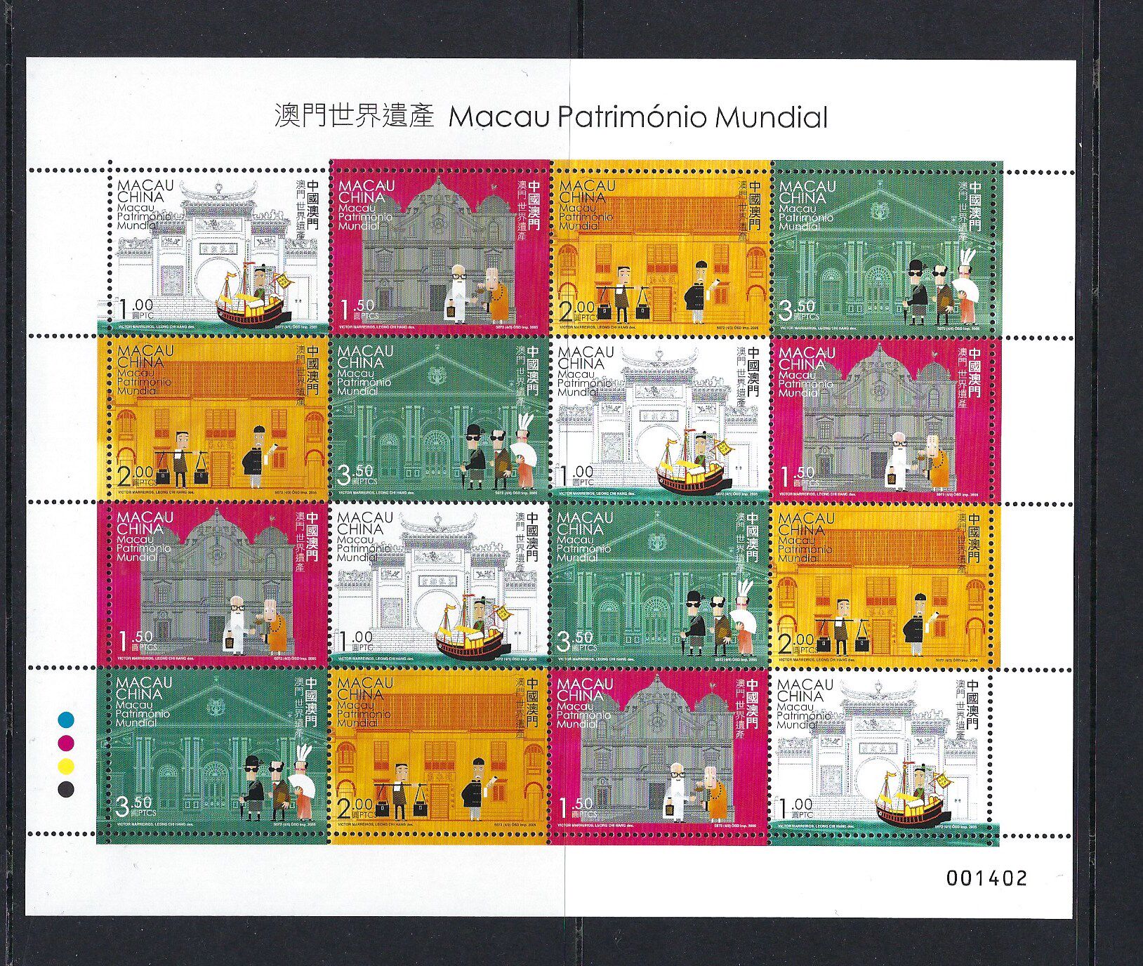 中國 澳門 2005 年 澳門世界遺產 小版 郵票