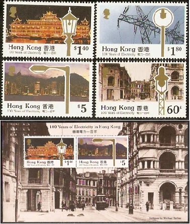 1990香港邮票,电力百年,4全+小全张