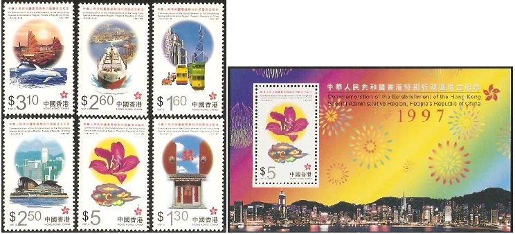 1997香港邮票,特别行政区成立,6全+小型张