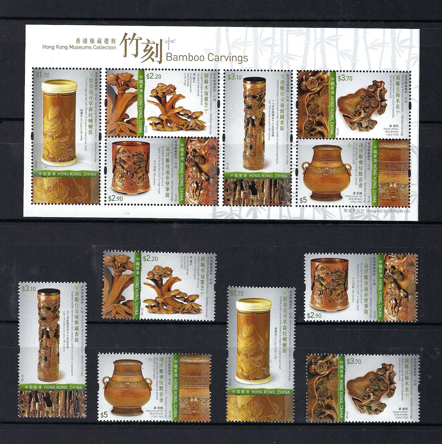 香港 2017 香港館藏選粹 – 竹刻 郵票 + 小全張