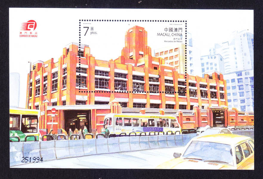 澳门邮票 2001年澳门街市小型张.建筑 新