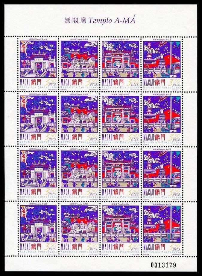 澳門 1997 世界文化遺產 媽閣廟 郵票 小版張