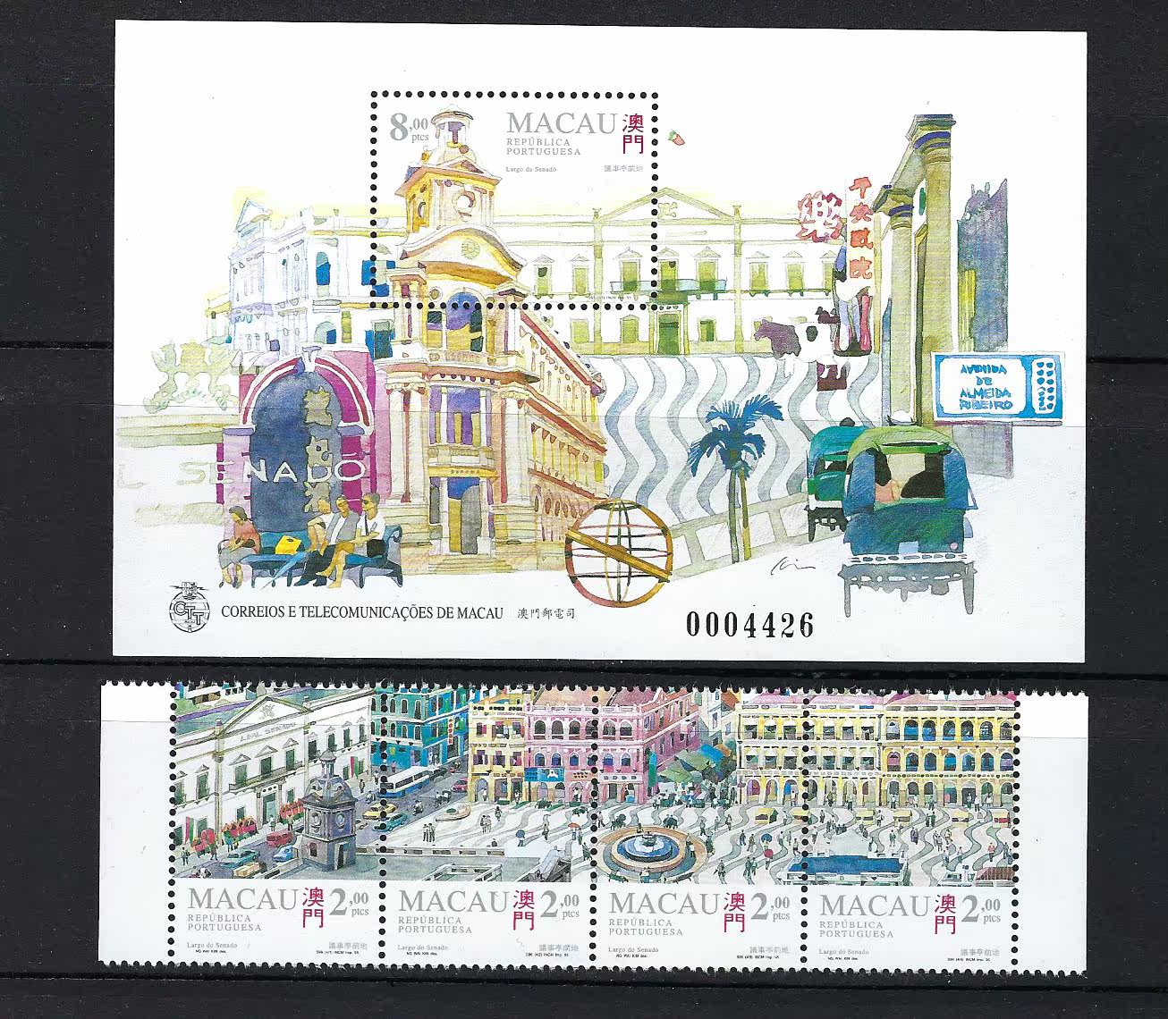中國 澳門 1995年 議事亭前地 郵票 + 小全張