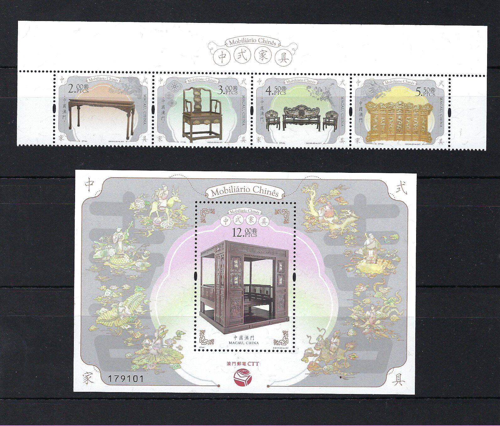澳門 2017 中式家具 郵票 + 小型張