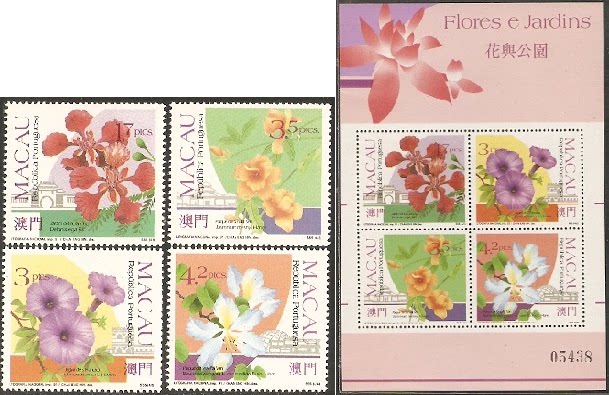 1991澳门邮票,花与公园(第一组),4全+小全张