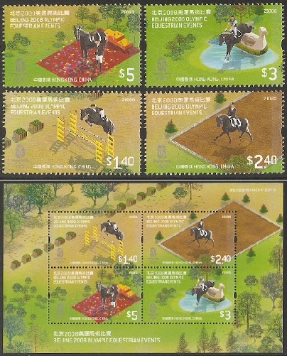 2008香港邮票,奥运-马术比赛,4全+小全张