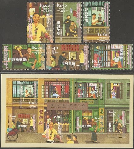 2003香港邮票,传统行业和民间工艺,6全+小全张。