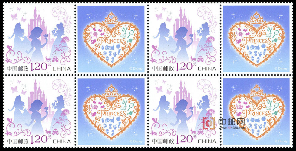 GXHP47 《迪士尼--公主》个性化邮票(2017年)(四方连)