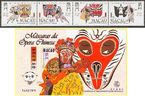 1998澳门邮票,中国戏曲-脸谱,4全+小型张。