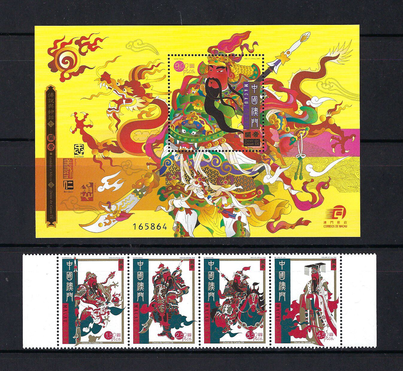 澳門 2004年 傳說與神話 關帝 郵票 + 小型張