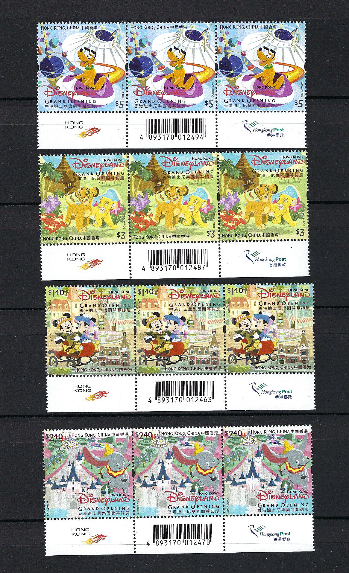 香港 2005年 迪士尼 樂園 三連 郵票 特別位 帶 雀仔 飛龍 條碼\