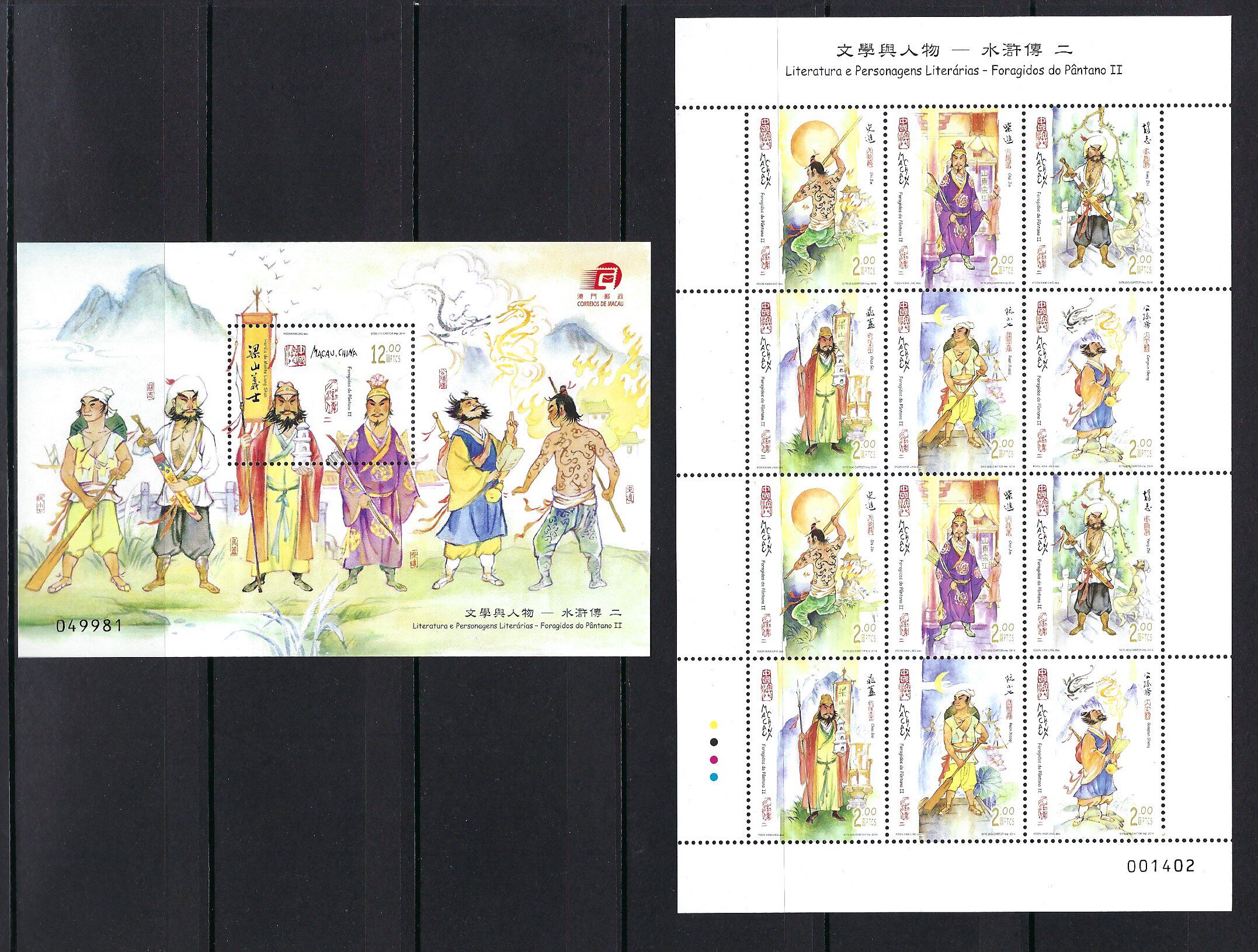 澳門 郵票 2014年 文學與人物 - 水滸傳 二組 小型張 + 小版