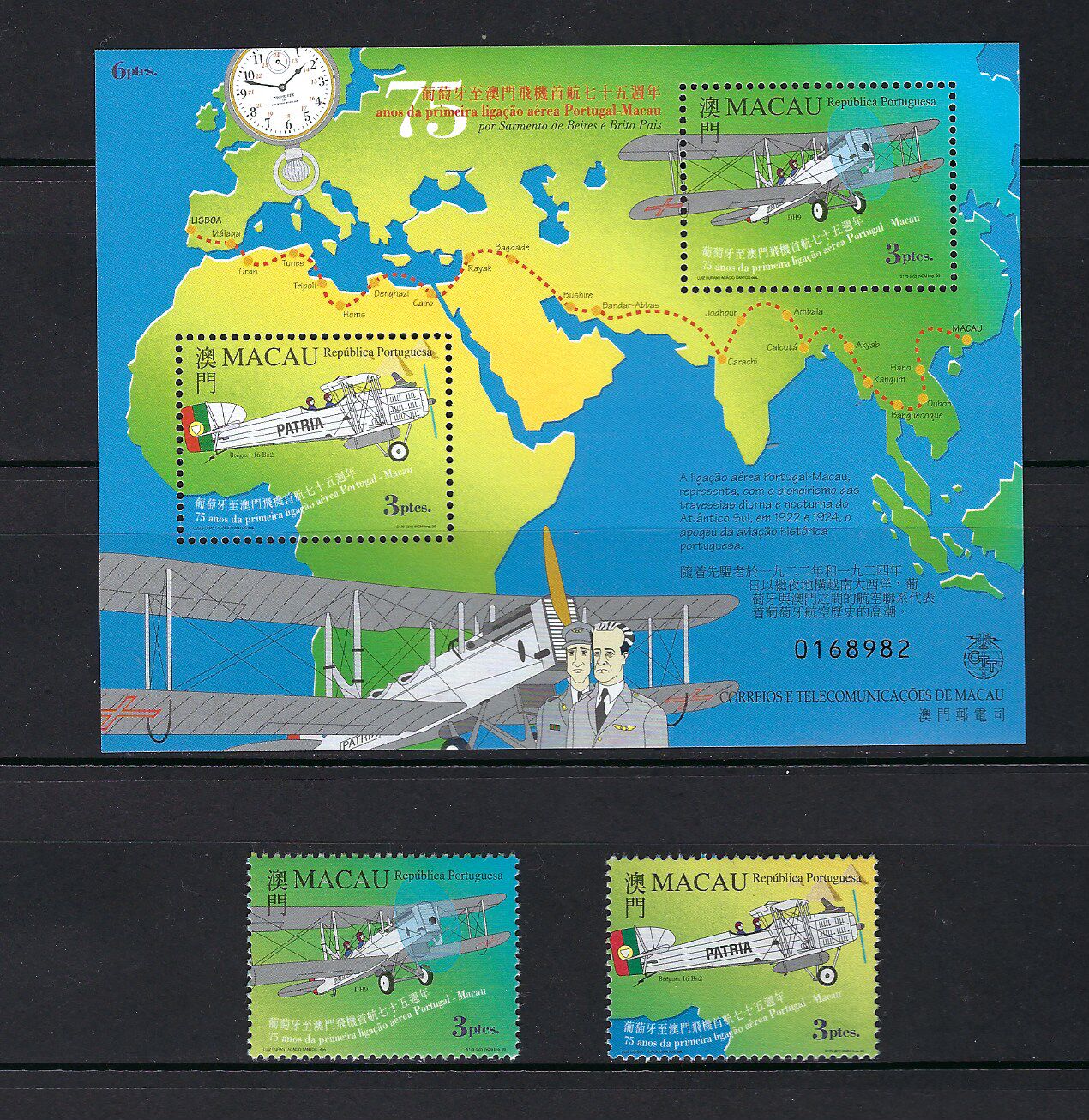 澳門 1999年 大事記 - 里斯本至澳門飛機首航 郵票 + 小全張