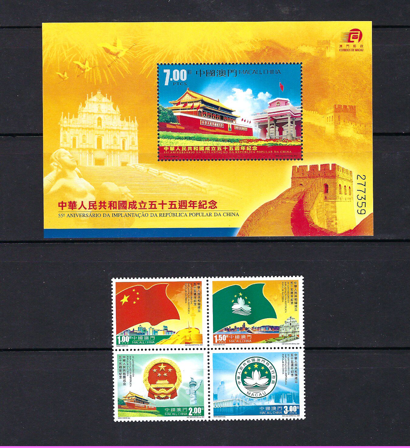 澳門 郵票 2004年 中華人民共和國成立55周年 郵票 + 小型張