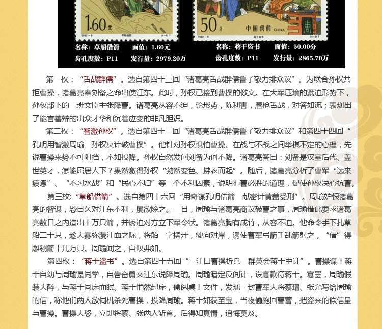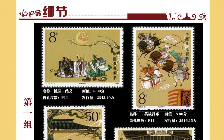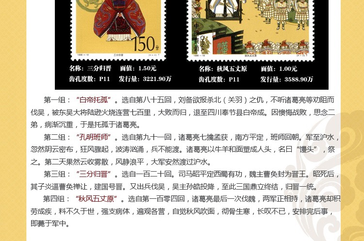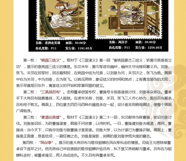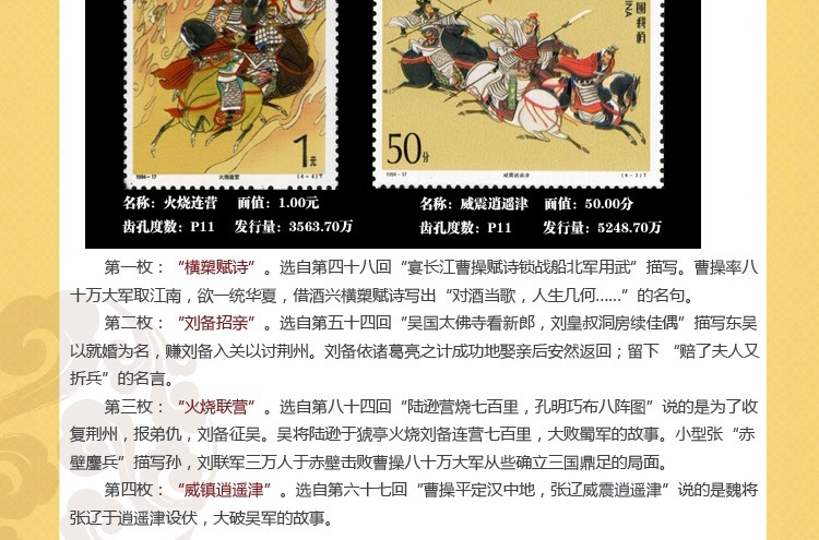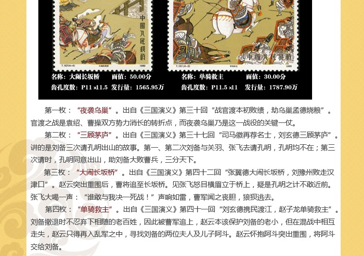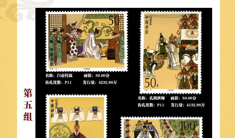 ZH-95 中国古典文学名著--《三国演义》邮票1-5组合售