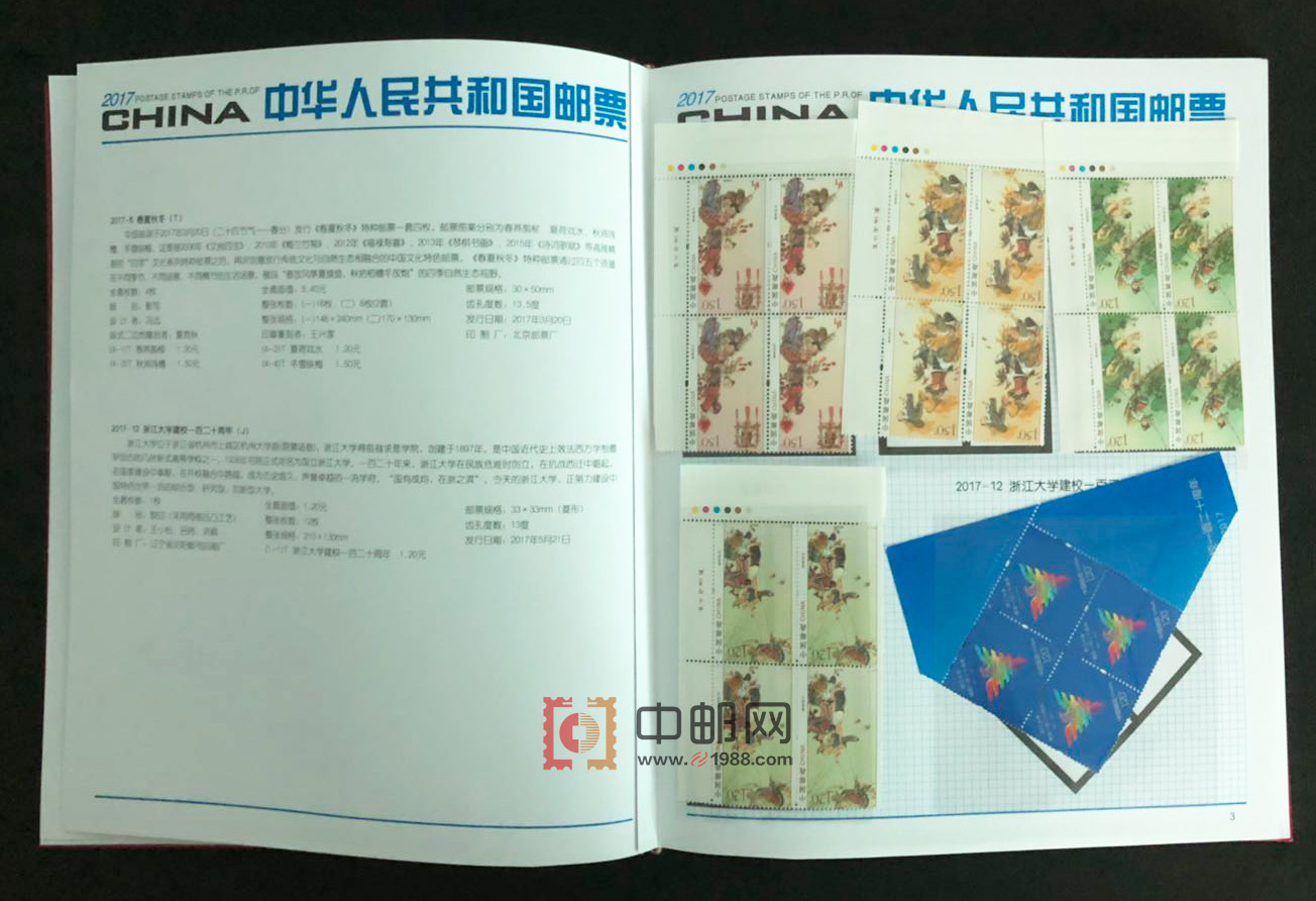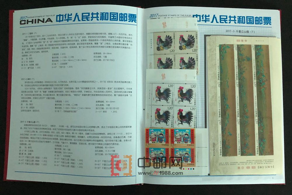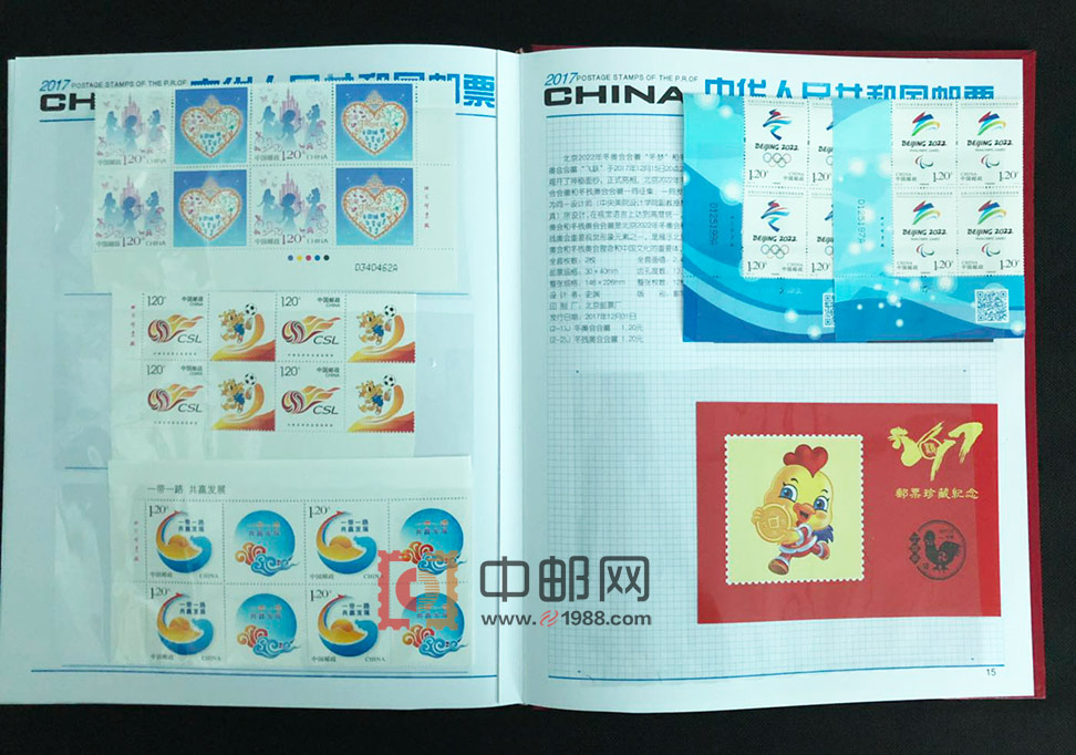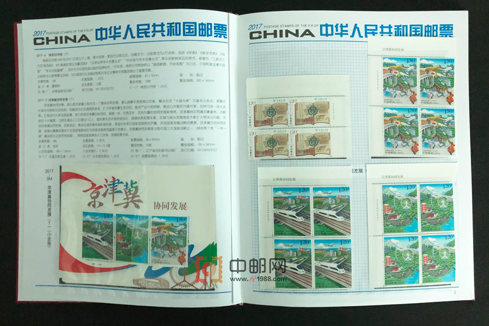 2017年四方连邮票册,北方大册,包含2017年发行的所有邮票和小型(全)张,且均为4份,不含评选纪念张。