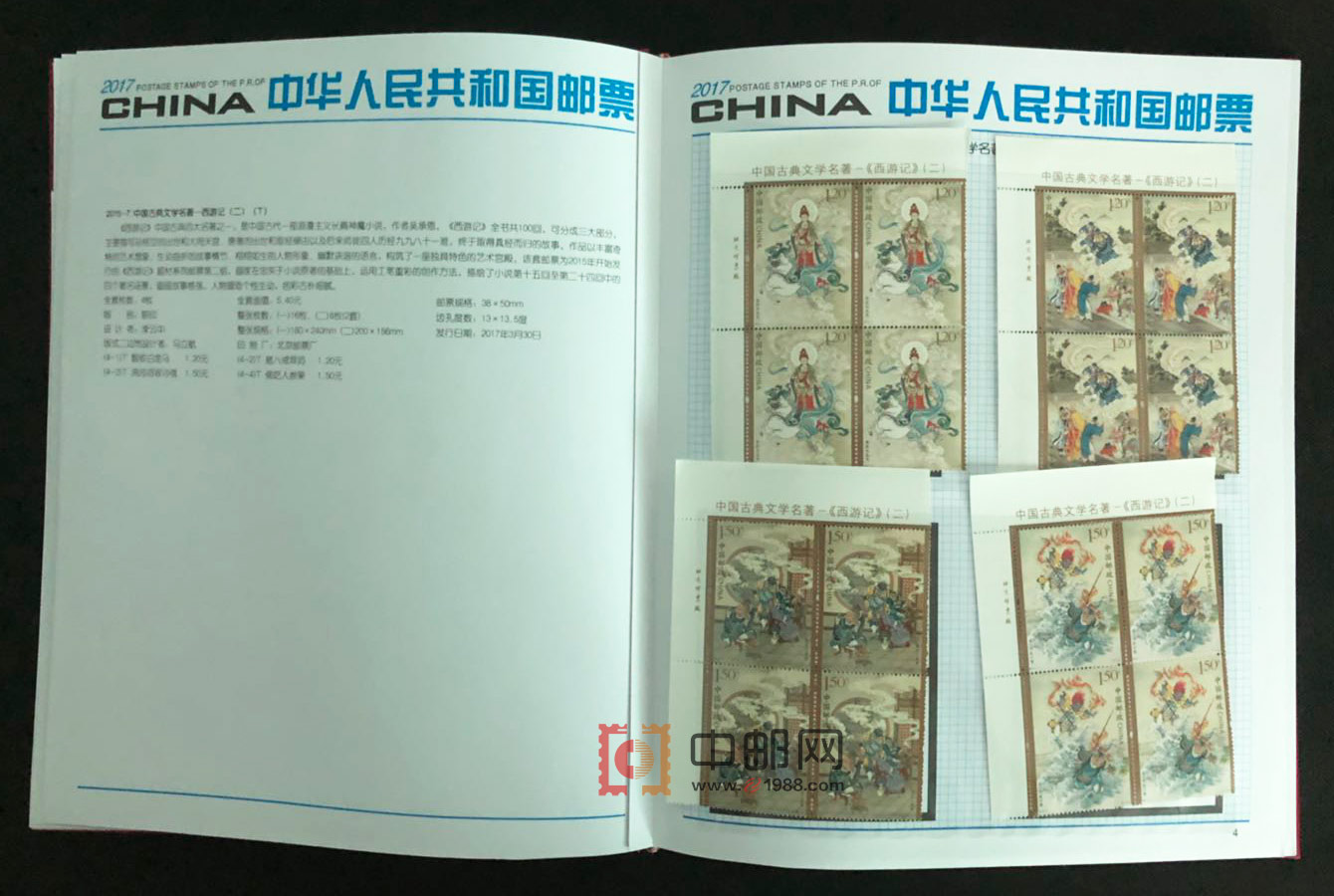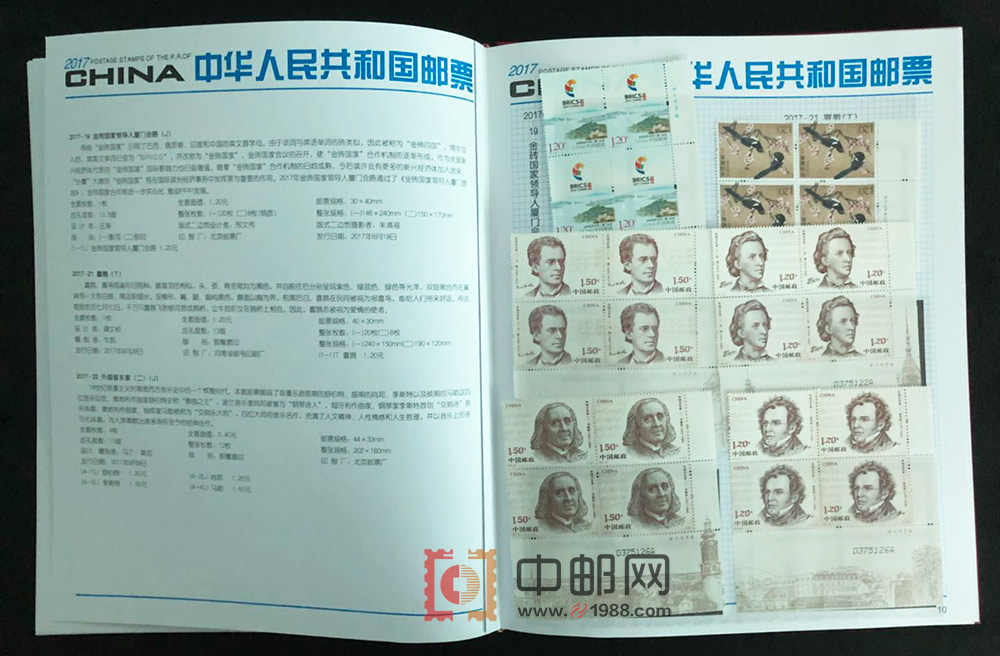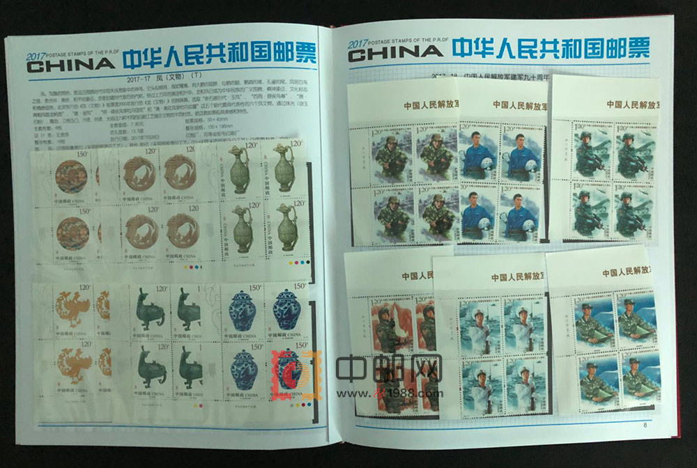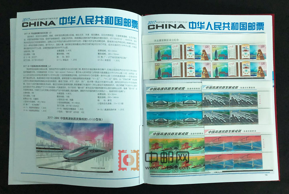2017年四方连邮票册,北方大册,包含2017年发行的所有邮票和小型(全)张,且均为4份,不含评选纪念张。