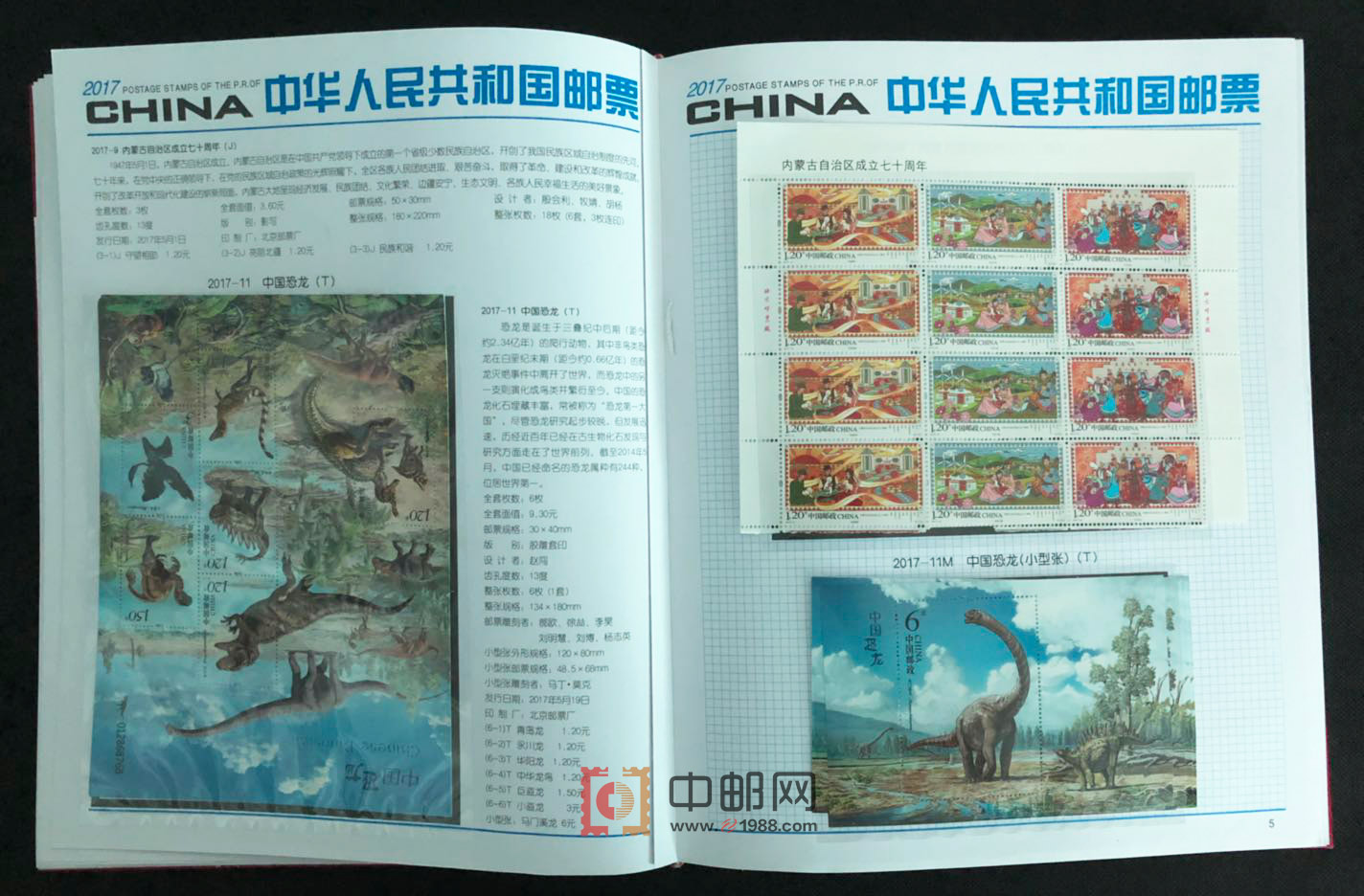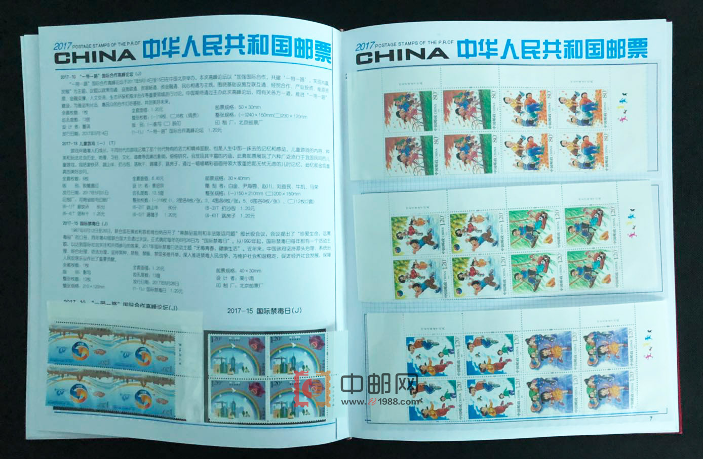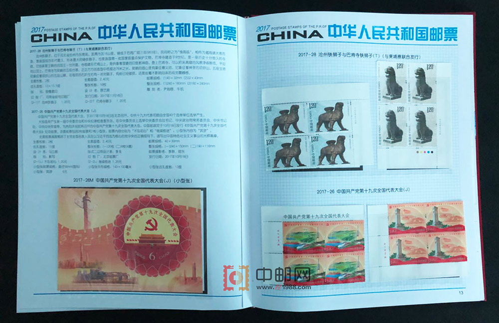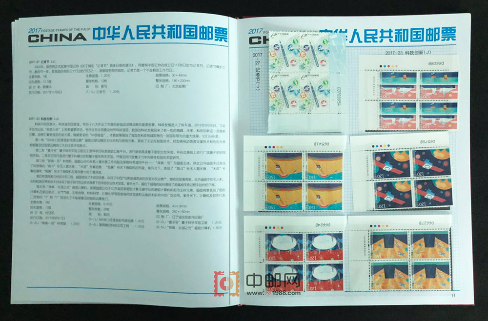 2017年四方连邮票厂铭册,北方大册,保证每套票是顺厂铭,但不保证全是左厂铭。包含2017年发行的所有邮票和小型(全)张,且均为4份,不含评选纪念张。