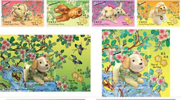 香港 2018 四轮 生肖《狗年》邮票 小型張 絲綢