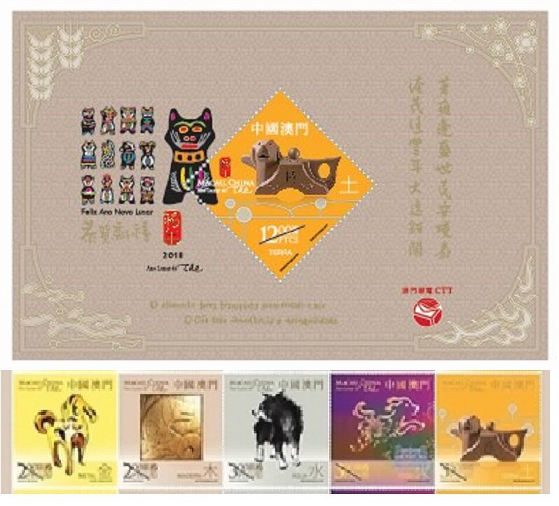 澳門 2018 狗年 三輪 12生肖 狗 郵票 + 小型張