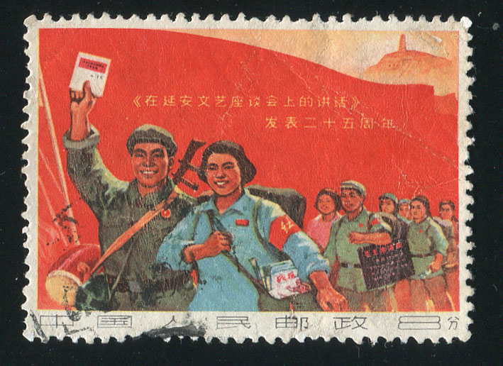BFW089 文3 《在延安文艺座谈会上的讲话》发表25周年“8分宣传队”单枚信销票