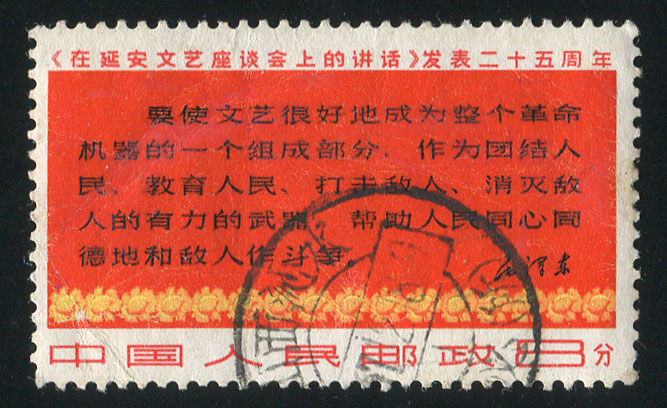BFW106 文3 《在延安文艺座谈会上的讲话》发表25周年“8分四行半”单枚信销票
